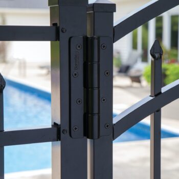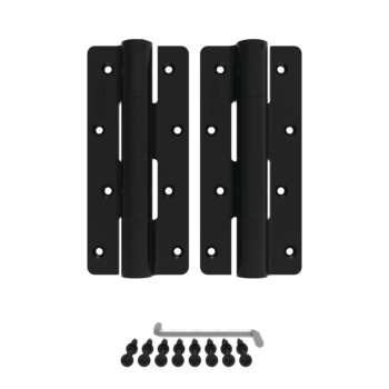 Heavy-Duty Butterfly Hinges feature self-closing and manual-close functionality with tension adjustments — allowing for customization of the resistance and speed of gate closure.