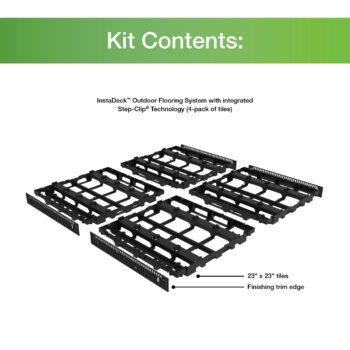 DuraLife InstaDeck Outdoor Flooring System is a DIY dream come true. With tiles that easily snap together to create a foundation for a freestanding, ground-level deck, InstaDeck can be assembled on any flat surface, using minimal tools. Build a new deck in a few hours and at a fraction of the cost of a traditional deck or pavers. The integrated Step-Clip® fastening system makes installing compatible composite deck boards* fast and easy. No screws needed — just step and clip to lock deck boards securely into place.