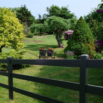 Post and Rail aluminum fencing — available in 7 colors — provides a durable, low-maintenance way to wrangle in large open spaces and define boundaries.
